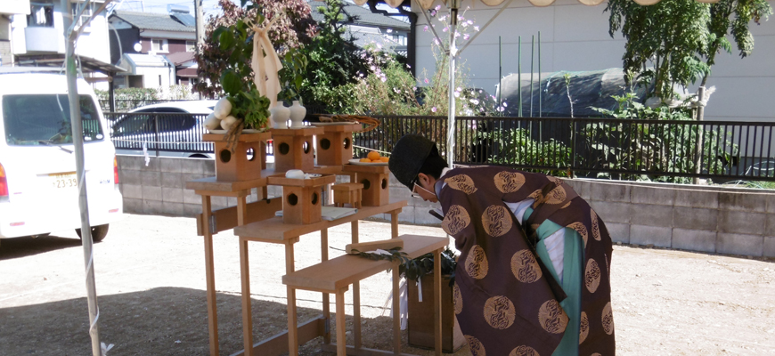 土地の神様に家を建てる挨拶をおこないます。(地鎮祭)