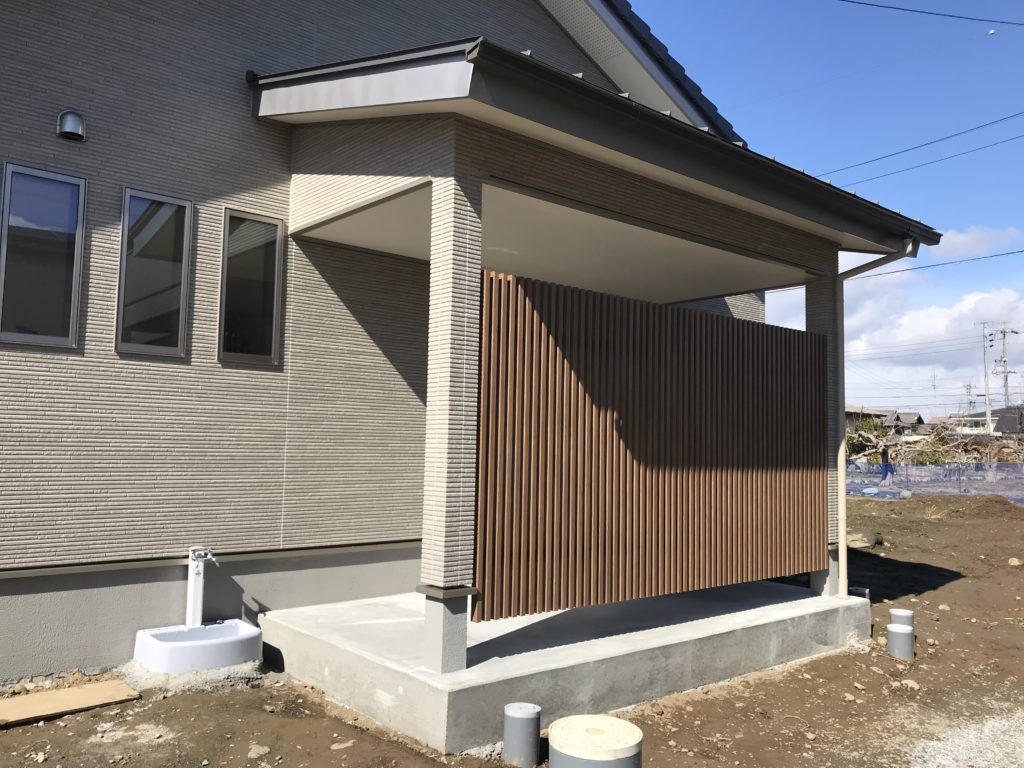 勝手口を出ると、屋根付きのテラスがります。