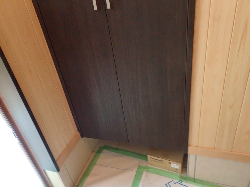 腰壁には杉の羽目板をはり正面の壁も角をとってあるので広い導線が確保されています。